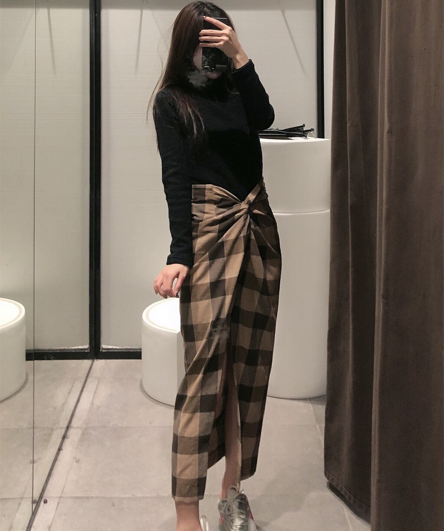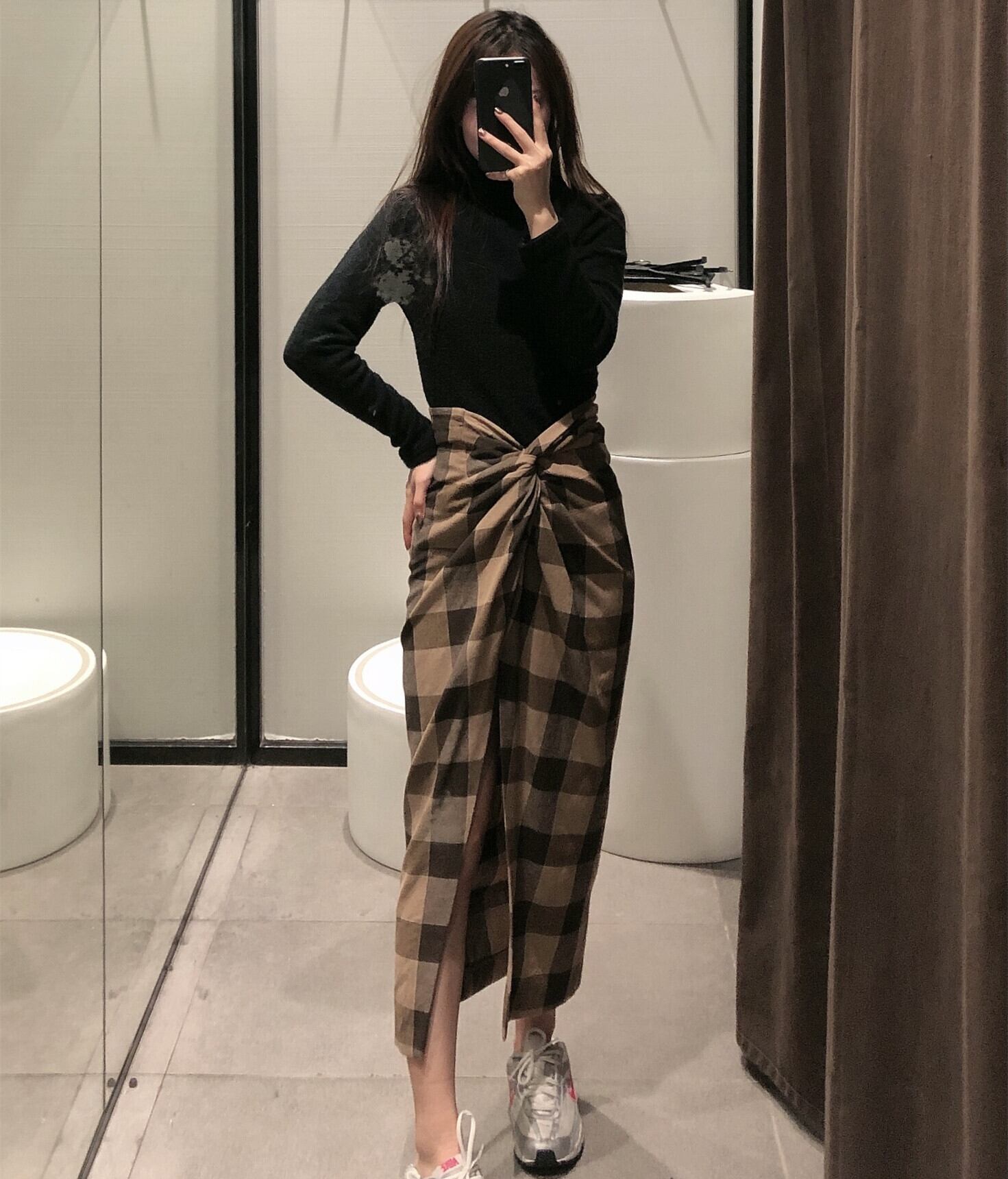Ω スリット格子柄ロング丈スカート ミモレ丈 Ω アイドル ジャケット ブルゾン Tシャツ 長袖 半袖 デニム ジーンズ スーツ ZARA フォーエバー21 GAP H&M WEGO HONEYS MUJI GU UNIQLO dholic babyGAP FOREVER21 Old Navy 春夏秋冬 韓国 K-POP Kpop 韓流 スター 25A15994734539