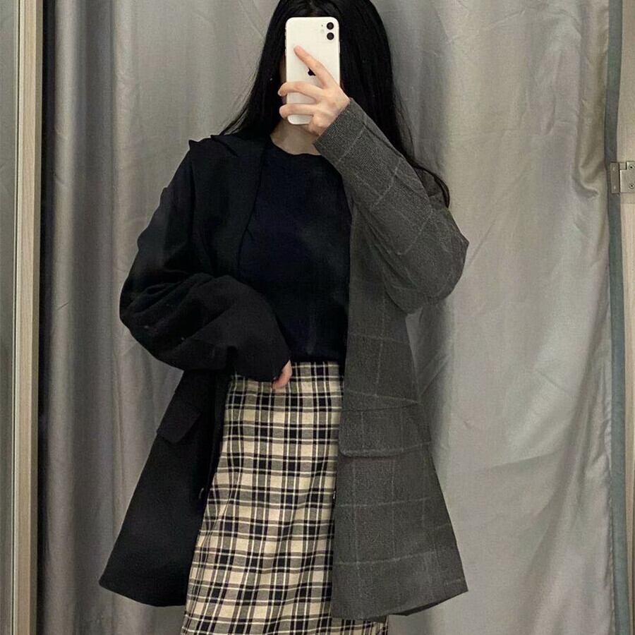 Ω スプリングオータムジャケット ルーズカラー格子柄 春物 秋物 Ω アイドル ジャケット ブルゾン Tシャツ 長袖 半袖 デニム ジーンズ スーツ ZARA フォーエバー21 GAP H&M WEGO HONEYS MUJI GU UNIQLO dholic babyGAP FOREVER21 Old Navy 春夏秋冬 韓国 K-POP Kpop 韓流 スター 25A86810956353