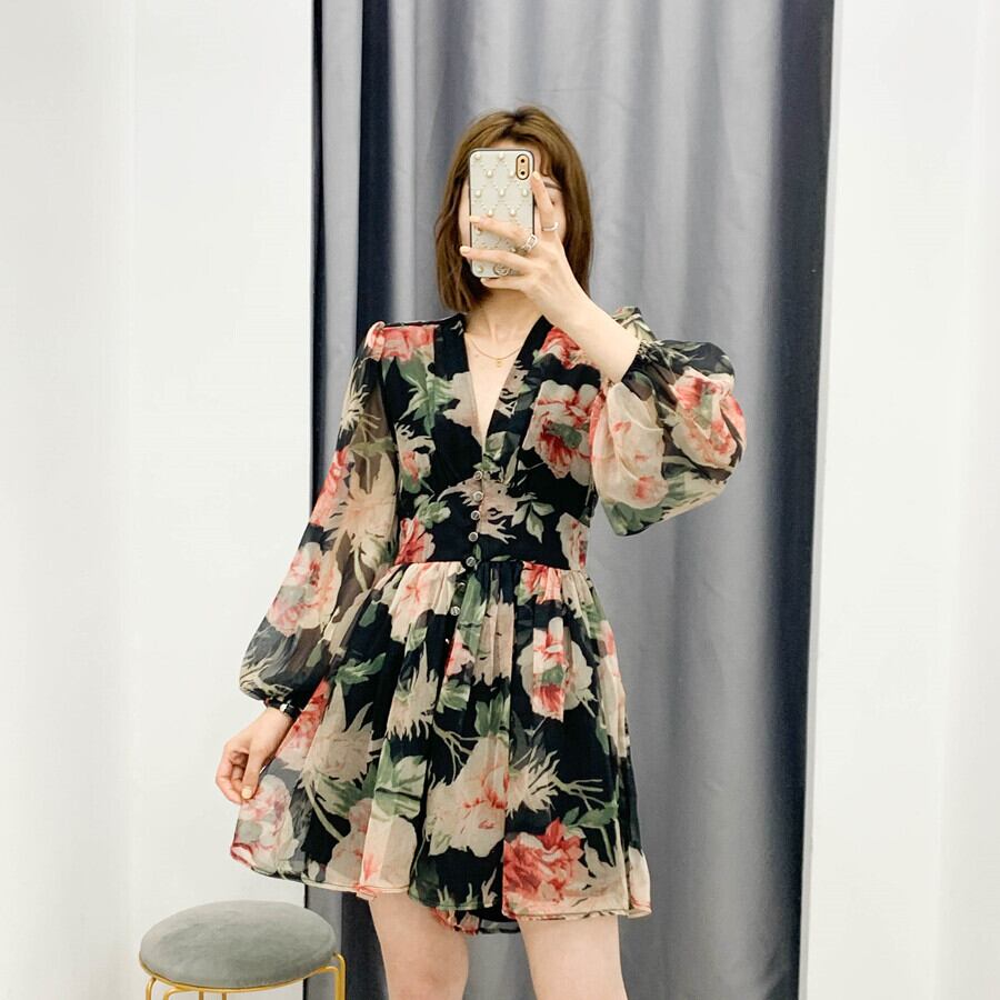 Ω 花がらプリントVネックスリーブハイウェストチュニックワンピースドレス レトロ スプリング サマー夏物 Ω アイドル ジャケット ブルゾン Tシャツ 長袖 半袖 デニム ジーンズ スーツ ZARA フォーエバー21 GAP H&M WEGO HONEYS MUJI GU UNIQLO dholic babyGAP FOREVER21 Old Navy 春夏秋冬 韓国 K-POP Kpop 韓流 スター 25A65328753717