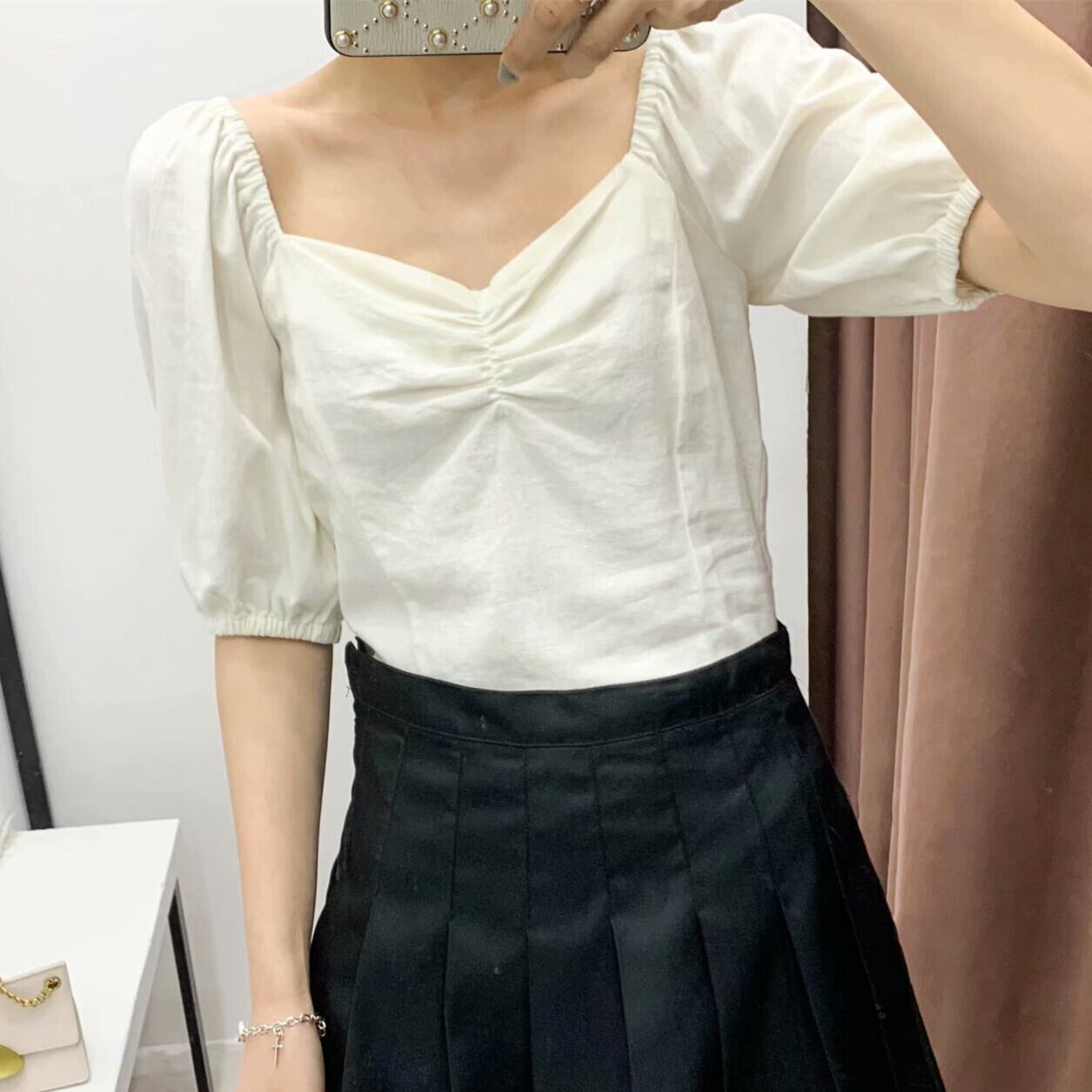 Ω ショートレディーススリーブTシャツ ブラウス スクウェア Ω アイドル ジャケット ブルゾン Tシャツ 長袖 半袖 デニム ジーンズ スーツ ZARA フォーエバー21 GAP H&M WEGO HONEYS MUJI GU UNIQLO dholic babyGAP FOREVER21 Old Navy 春夏秋冬 韓国 K-POP Kpop 韓流 スター 25A7430773212