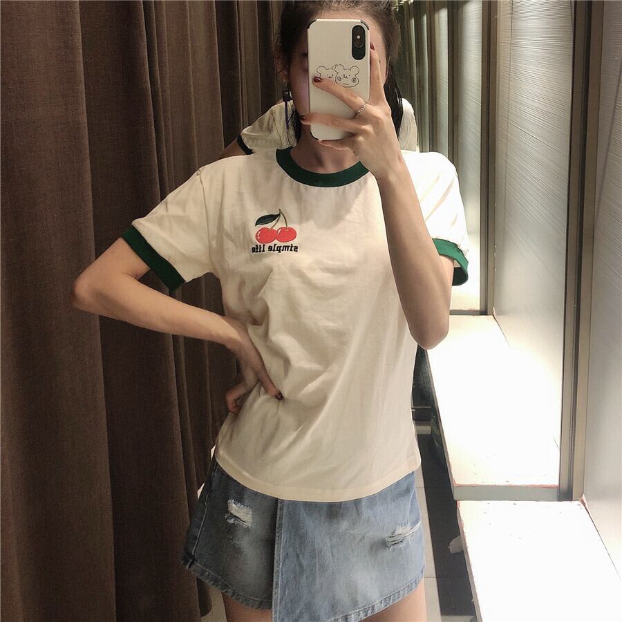 Ω カラーラウンドネックTシャツ レッド 刺繍 Oネック Ω アイドル ジャケット ブルゾン Tシャツ 長袖 半袖 デニム ジーンズ スーツ ZARA フォーエバー21 GAP H&M WEGO HONEYS MUJI GU UNIQLO dholic babyGAP FOREVER21 Old Navy 春夏秋冬 韓国 K-POP Kpop 韓流 スター 25A42280202774