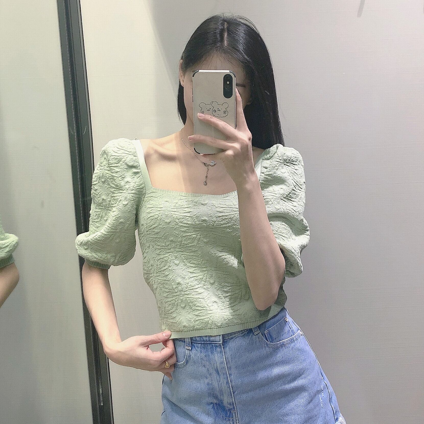 Ω グリーンジャカードショートトップス Ω アイドル ジャケット ブルゾン Tシャツ 長袖 半袖 デニム ジーンズ スーツ ZARA フォーエバー21 GAP H&M WEGO HONEYS MUJI GU UNIQLO dholic babyGAP FOREVER21 Old Navy 春夏秋冬 韓国 K-POP Kpop 韓流 スター 25A58587553560