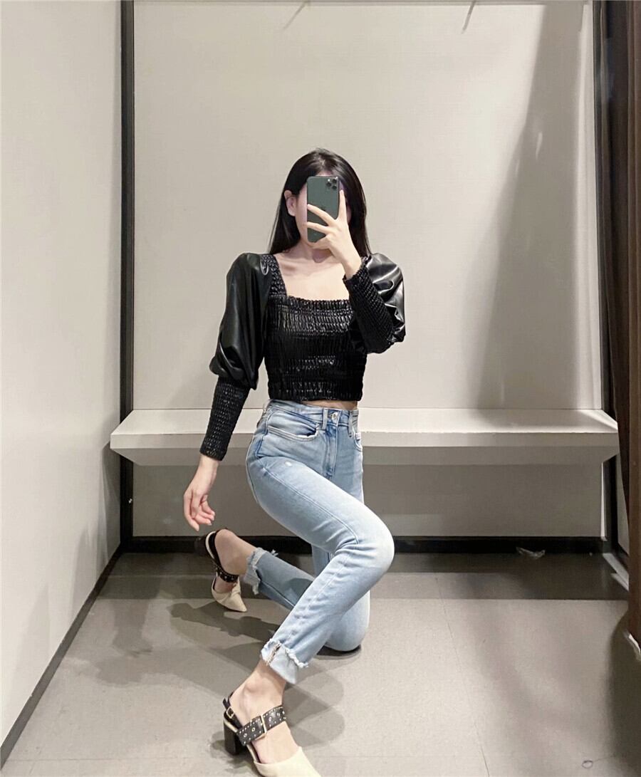 Ω ブラックカラーブラウス レザースリーブシャツ スクウェア Ω アイドル ジャケット ブルゾン Tシャツ 長袖 半袖 デニム ジーンズ スーツ ZARA フォーエバー21 GAP H&M WEGO HONEYS MUJI GU UNIQLO dholic babyGAP FOREVER21 Old Navy 春夏秋冬 韓国 K-POP Kpop 韓流 スター 25A31013589941