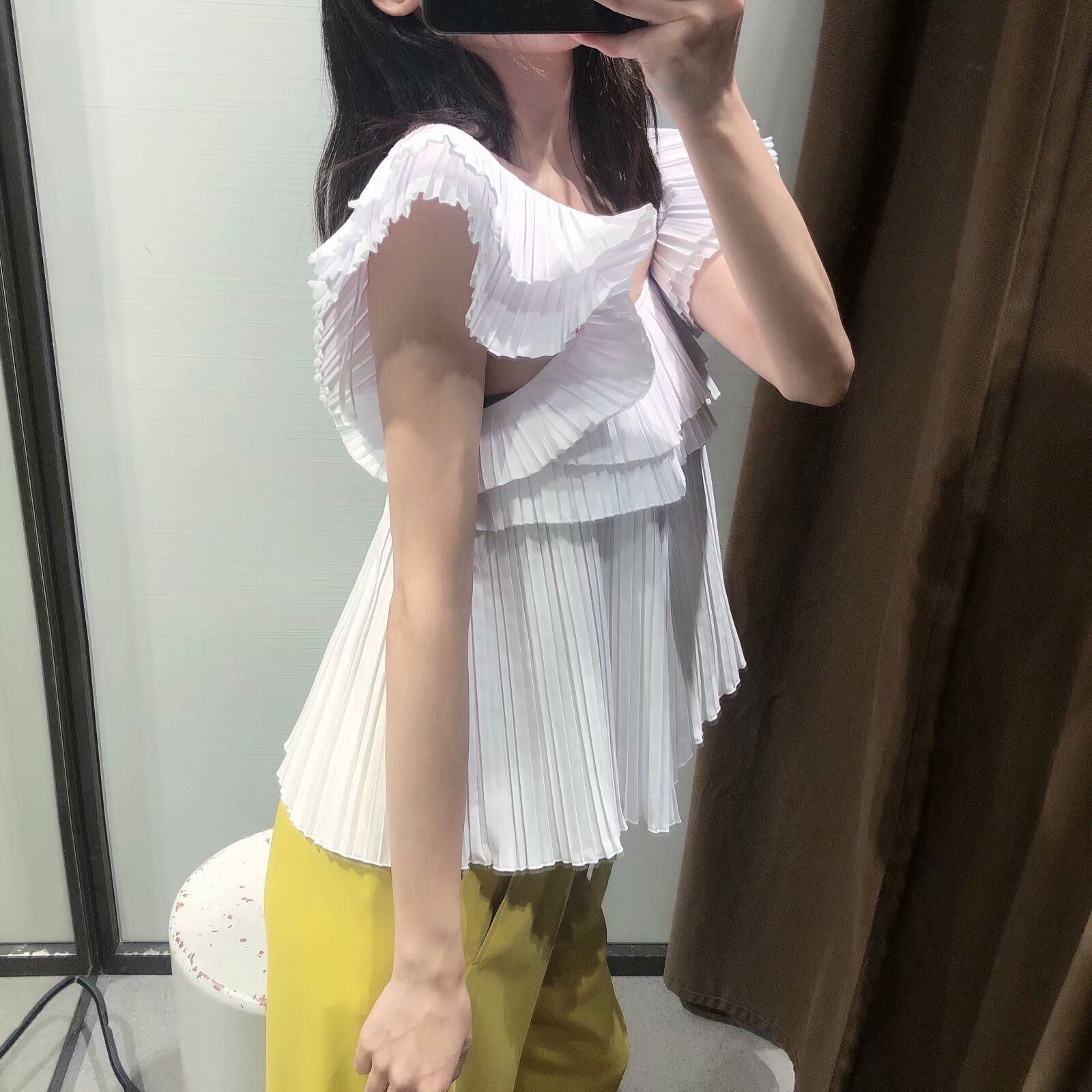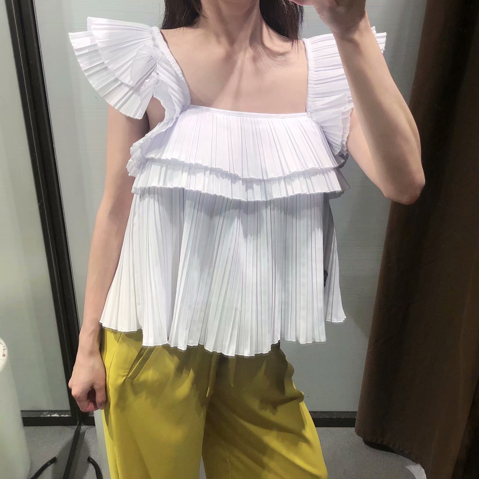 Ω スタイルスリーブVネックソリッド カラープリーツトップス ソリッドカラー Ω アイドル ジャケット ブルゾン Tシャツ 長袖 半袖 デニム ジーンズ スーツ ZARA フォーエバー21 GAP H&M WEGO HONEYS MUJI GU UNIQLO dholic babyGAP FOREVER21 Old Navy 春夏秋冬 韓国 K-POP Kpop 韓流 スター 25A39225973969