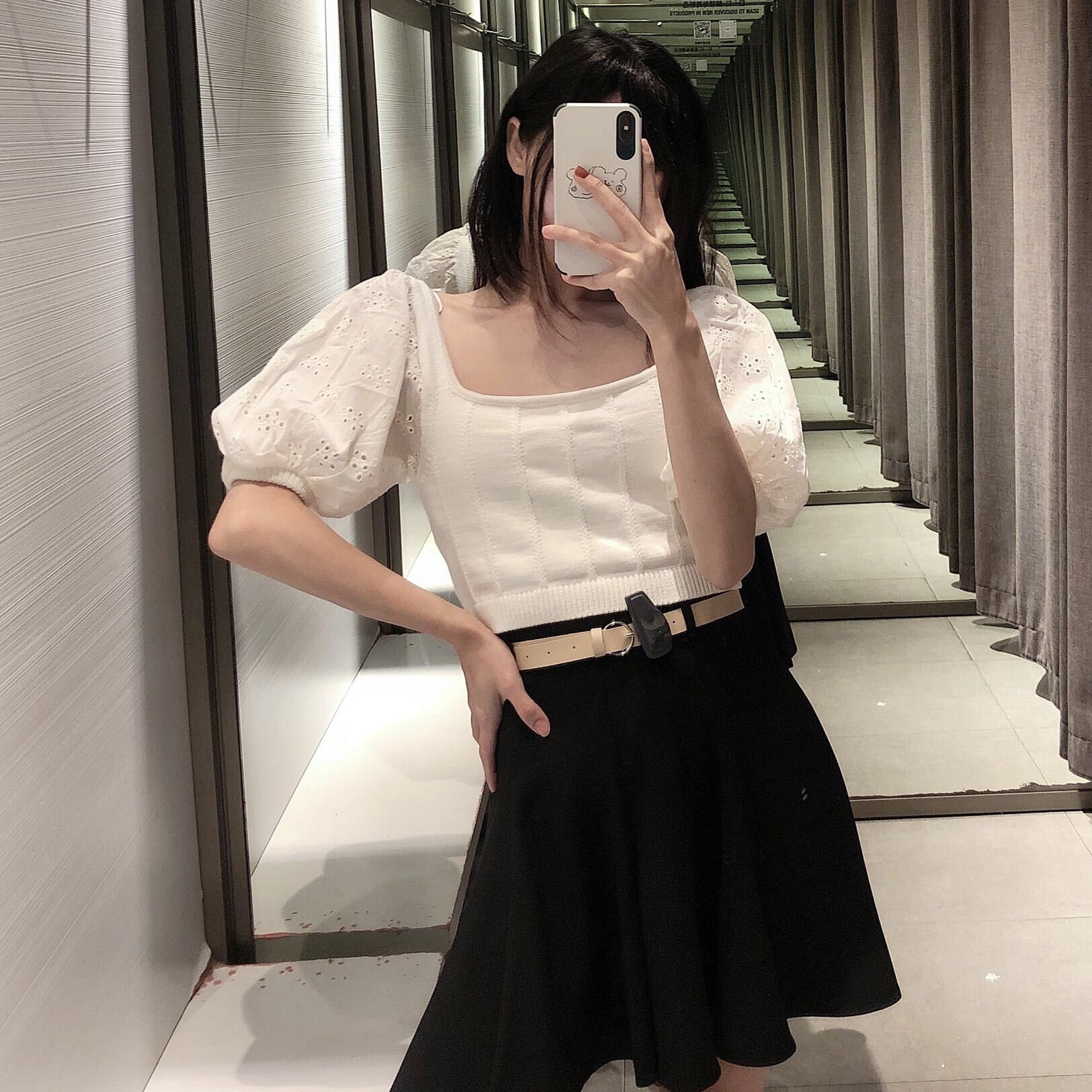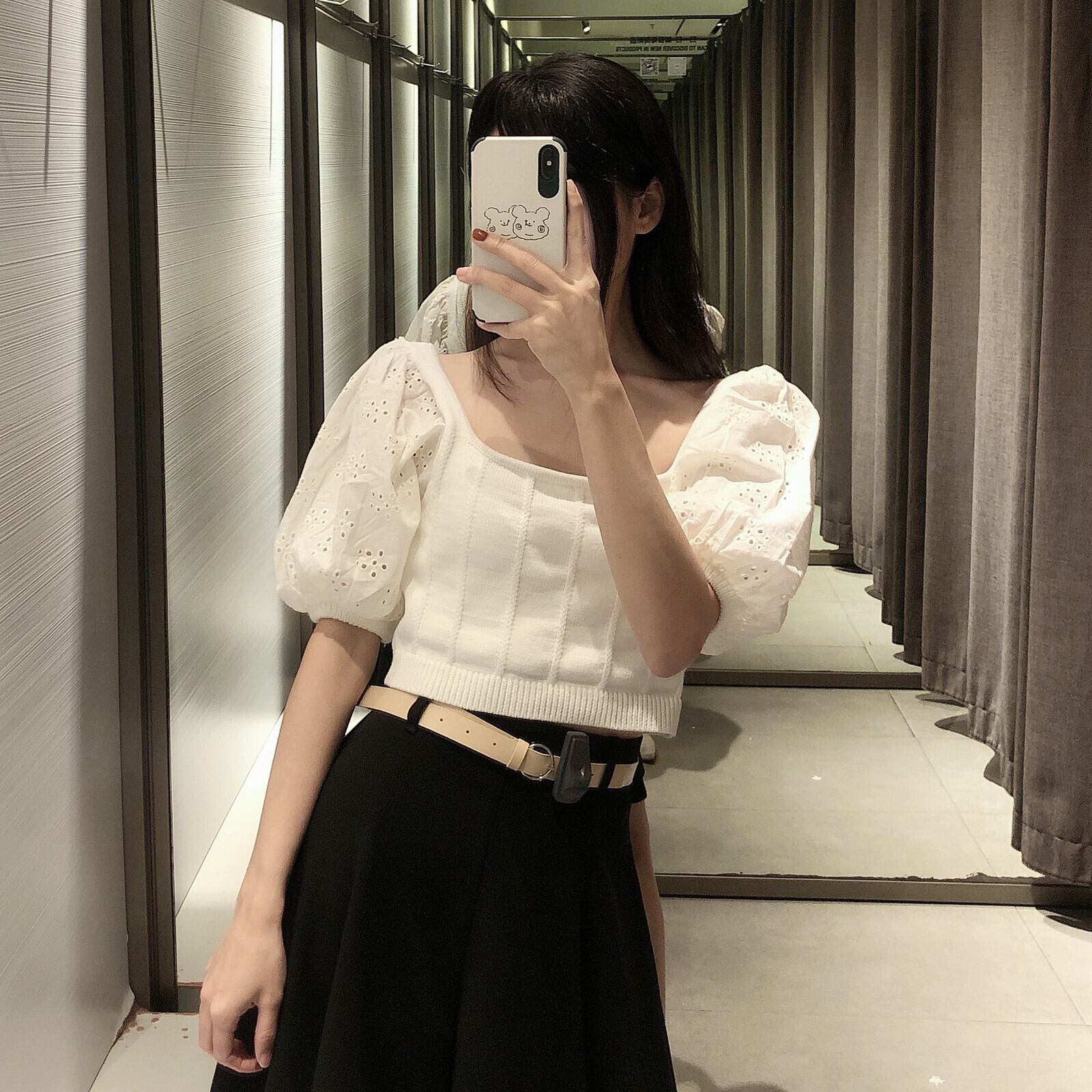 Ω ホワイトカラーシャツ クロップドトップス レッド 刺繍 スクウェア Ω アイドル ジャケット ブルゾン Tシャツ 長袖 半袖 デニム ジーンズ スーツ ZARA フォーエバー21 GAP H&M WEGO HONEYS MUJI GU UNIQLO dholic babyGAP FOREVER21 Old Navy 春夏秋冬 韓国 K-POP Kpop 韓流 スター 25A97914342900