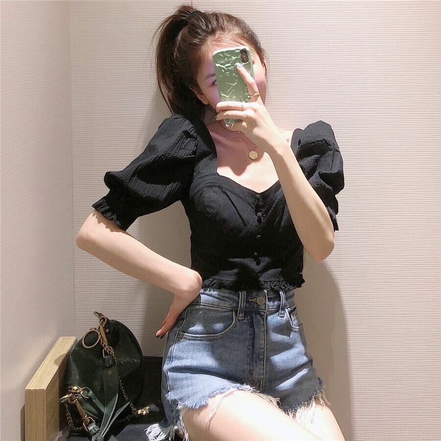 Ω ショートトップス ブラックスリーブカラーシャツ ランタンスリーブ スクウェア Ω アイドル ジャケット ブルゾン Tシャツ 長袖 半袖 デニム ジーンズ スーツ ZARA フォーエバー21 GAP H&M WEGO HONEYS MUJI GU UNIQLO dholic babyGAP FOREVER21 Old Navy 春夏秋冬 韓国 K-POP Kpop 韓流 スター 25A20201004024