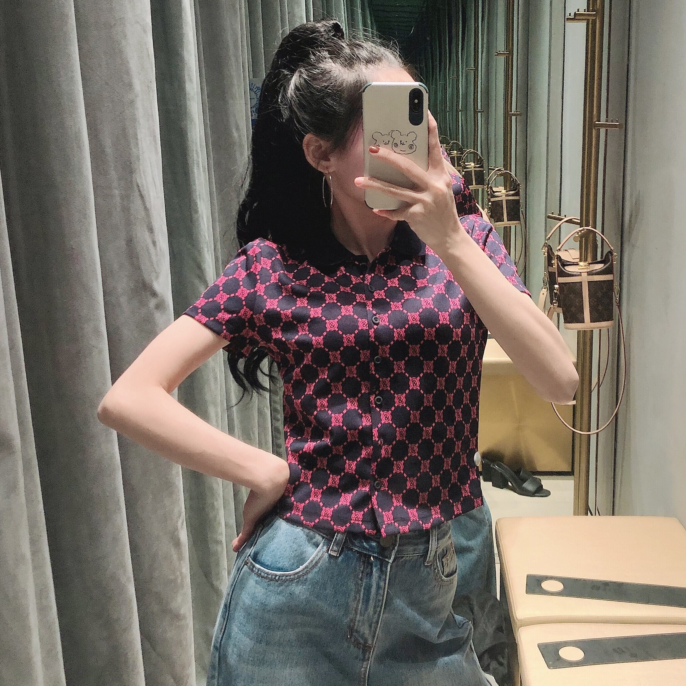 Ω 格子柄ショートトップス レディーススタンダードシャツ レトロ Ω アイドル ジャケット ブルゾン Tシャツ 長袖 半袖 デニム ジーンズ スーツ ZARA フォーエバー21 GAP H&M WEGO HONEYS MUJI GU UNIQLO dholic babyGAP FOREVER21 Old Navy 春夏秋冬 韓国 K-POP Kpop 韓流 スター 25A83325047493