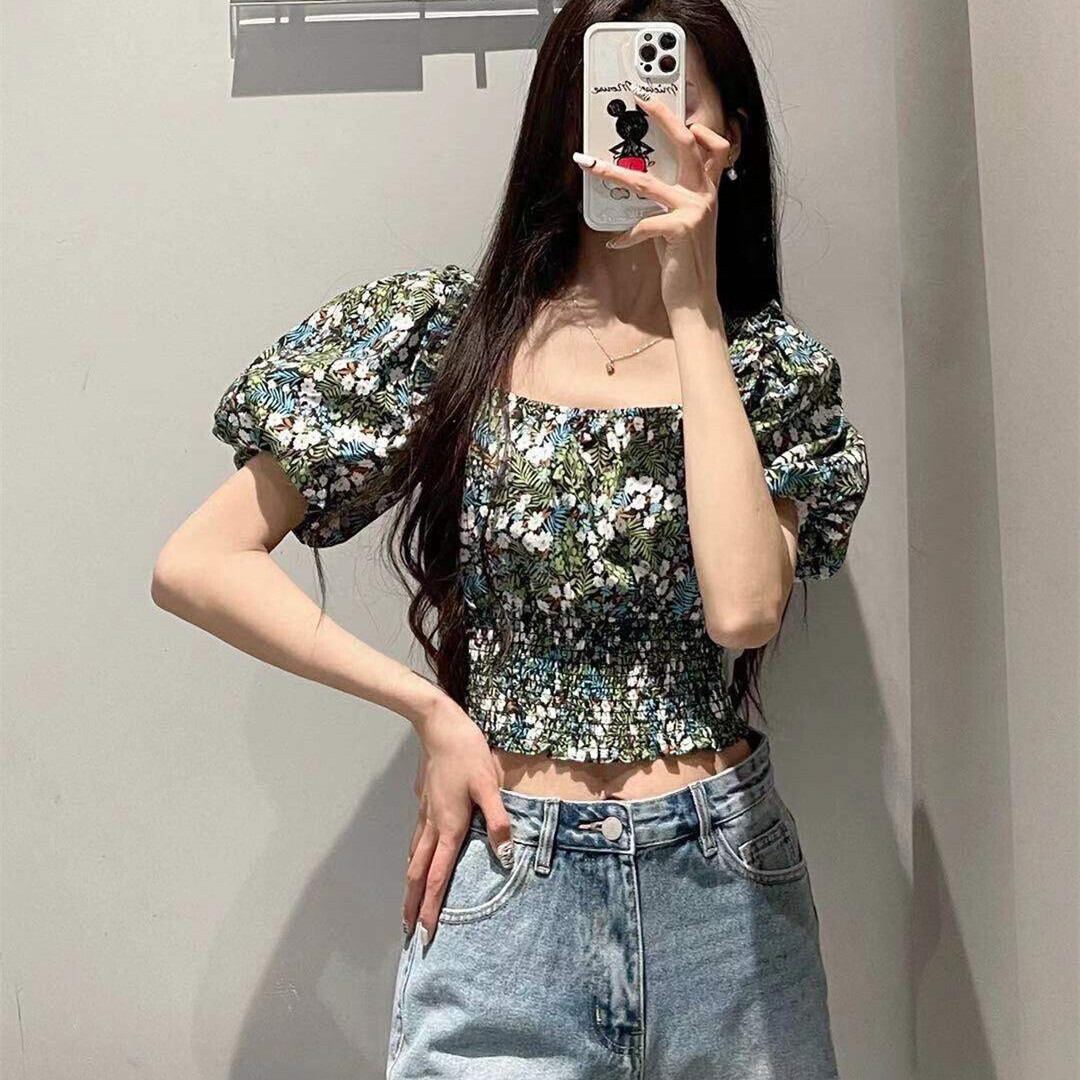 Ω ショートトップス カラーフローラルスリーブシャツ ランタンスリーブ 花柄 スクウェア Ω アイドル ジャケット ブルゾン Tシャツ 長袖 半袖 デニム ジーンズ スーツ ZARA フォーエバー21 GAP H&M WEGO HONEYS MUJI GU UNIQLO dholic babyGAP FOREVER21 Old Navy 春夏秋冬 韓国 K-POP Kpop 韓流 スター 25A78486989320