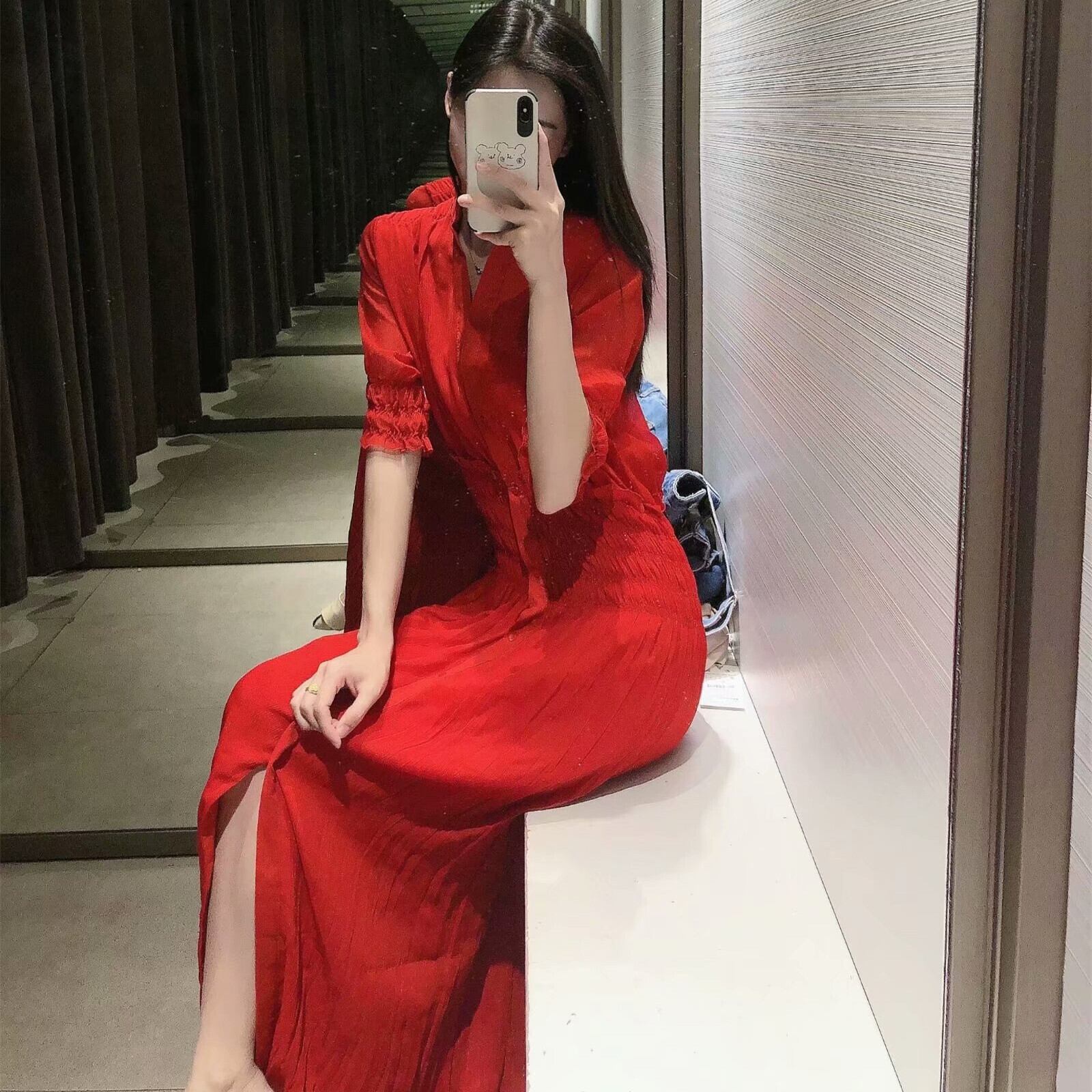 Ω レッドストレッチウェストドレス エラスティック 伸縮 Ω アイドル ジャケット ブルゾン Tシャツ 長袖 半袖 デニム ジーンズ スーツ ZARA フォーエバー21 GAP H&M WEGO HONEYS MUJI GU UNIQLO dholic babyGAP FOREVER21 Old Navy 春夏秋冬 韓国 K-POP Kpop 韓流 スター 25A89354769687