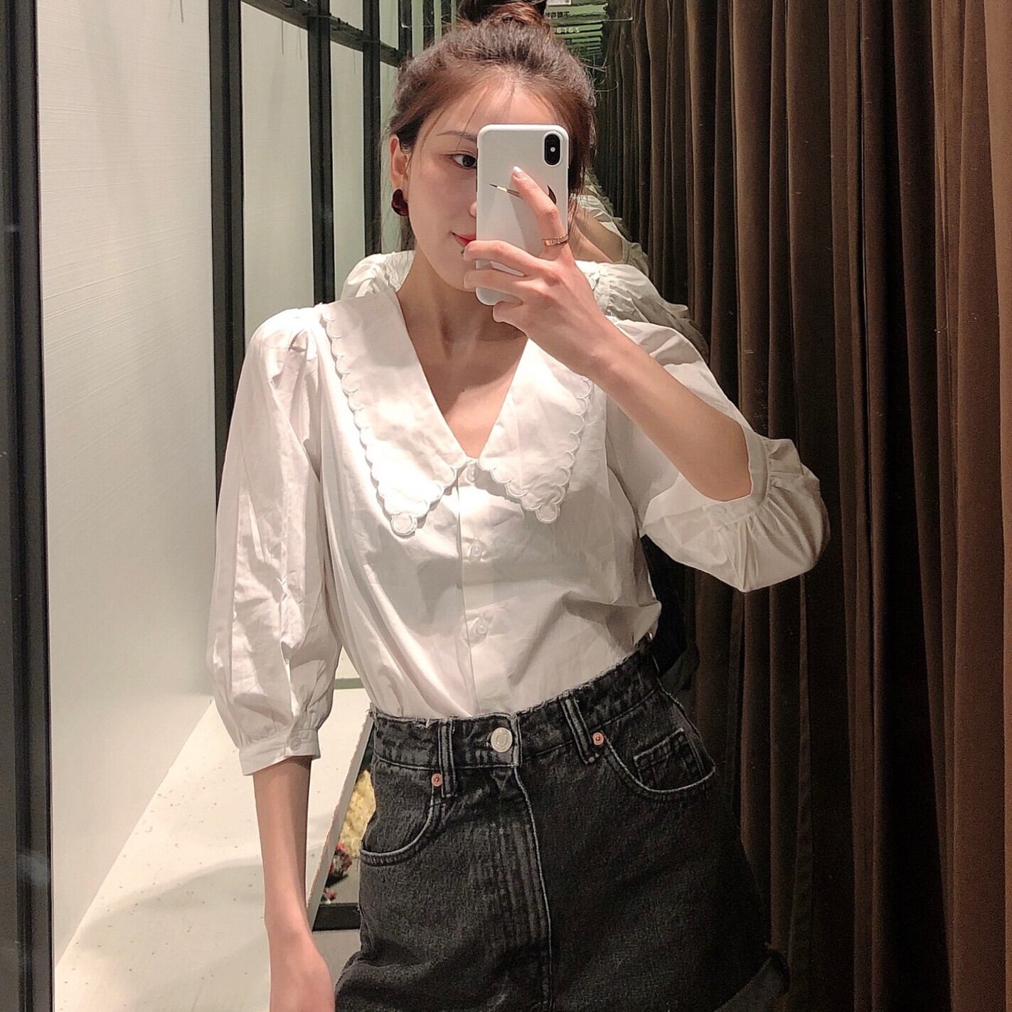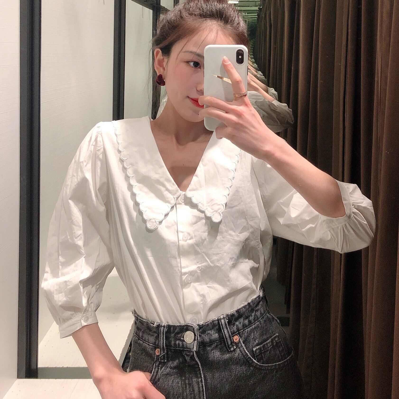 Ω ホワイトブラウス シャツ Ω アイドル ジャケット ブルゾン Tシャツ 長袖 半袖 デニム ジーンズ スーツ ZARA フォーエバー21 GAP H&M WEGO HONEYS MUJI GU UNIQLO dholic babyGAP FOREVER21 Old Navy 春夏秋冬 韓国 K-POP Kpop 韓流 スター 25A1886337594