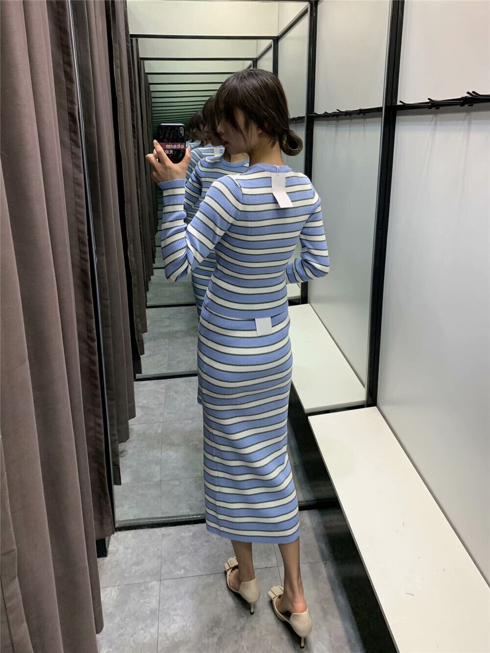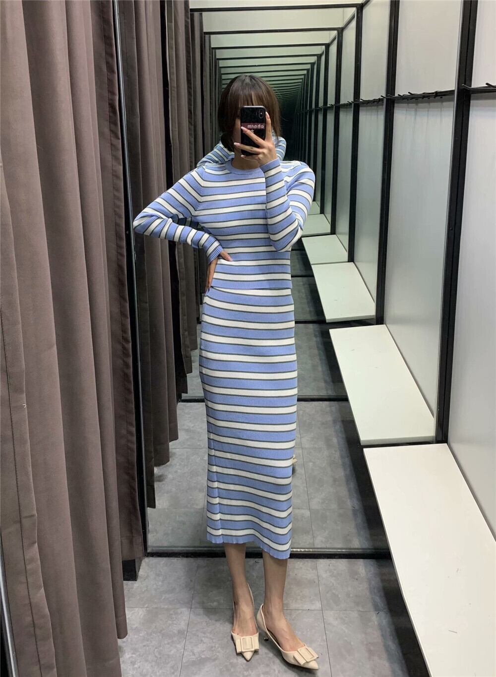 Ω スタイルストライプニットトップス ロング Ω アイドル ジャケット ブルゾン Tシャツ 長袖 半袖 デニム ジーンズ スーツ ZARA フォーエバー21 GAP H&M WEGO HONEYS MUJI GU UNIQLO dholic babyGAP FOREVER21 Old Navy 春夏秋冬 韓国 K-POP Kpop 韓流 スター 25A99025884804