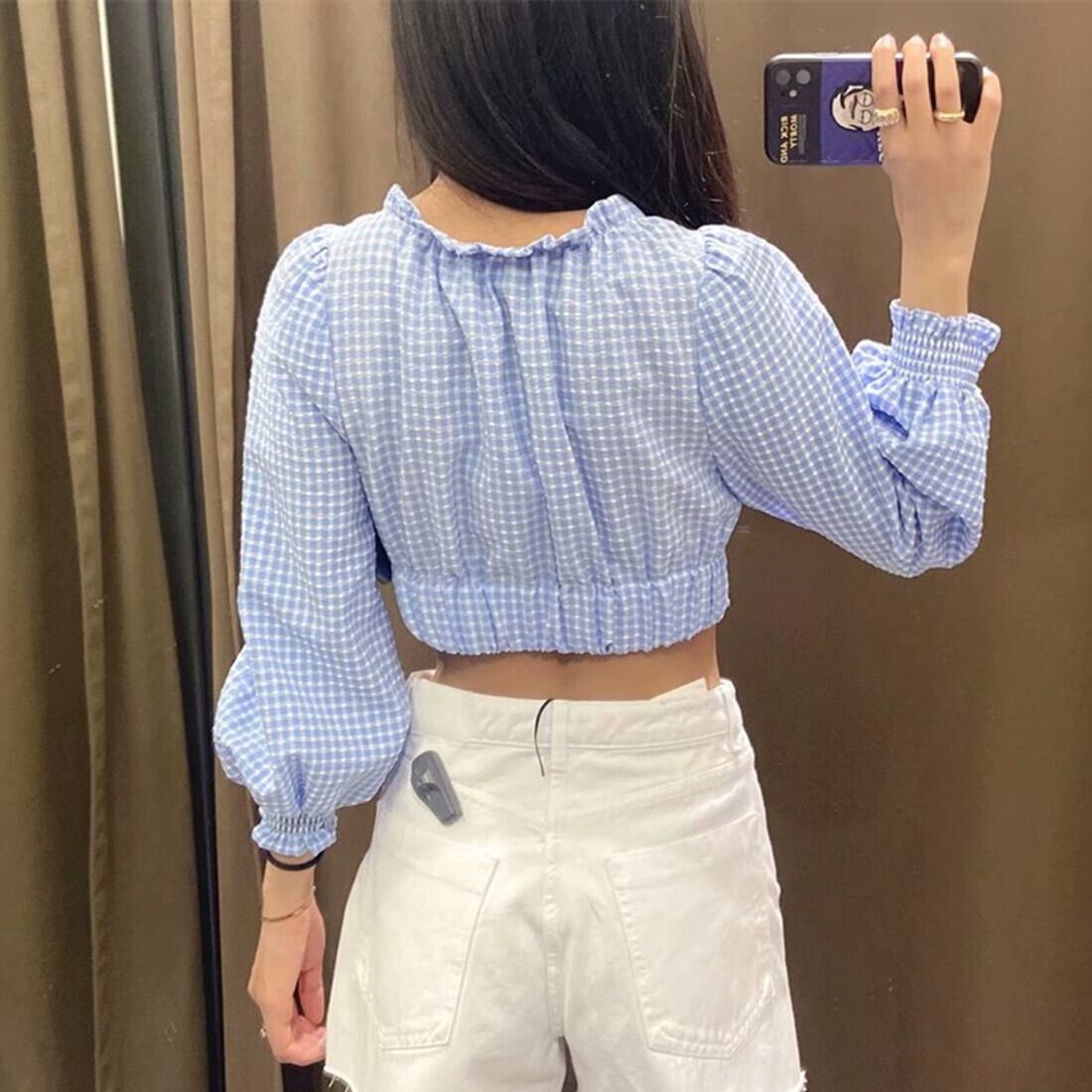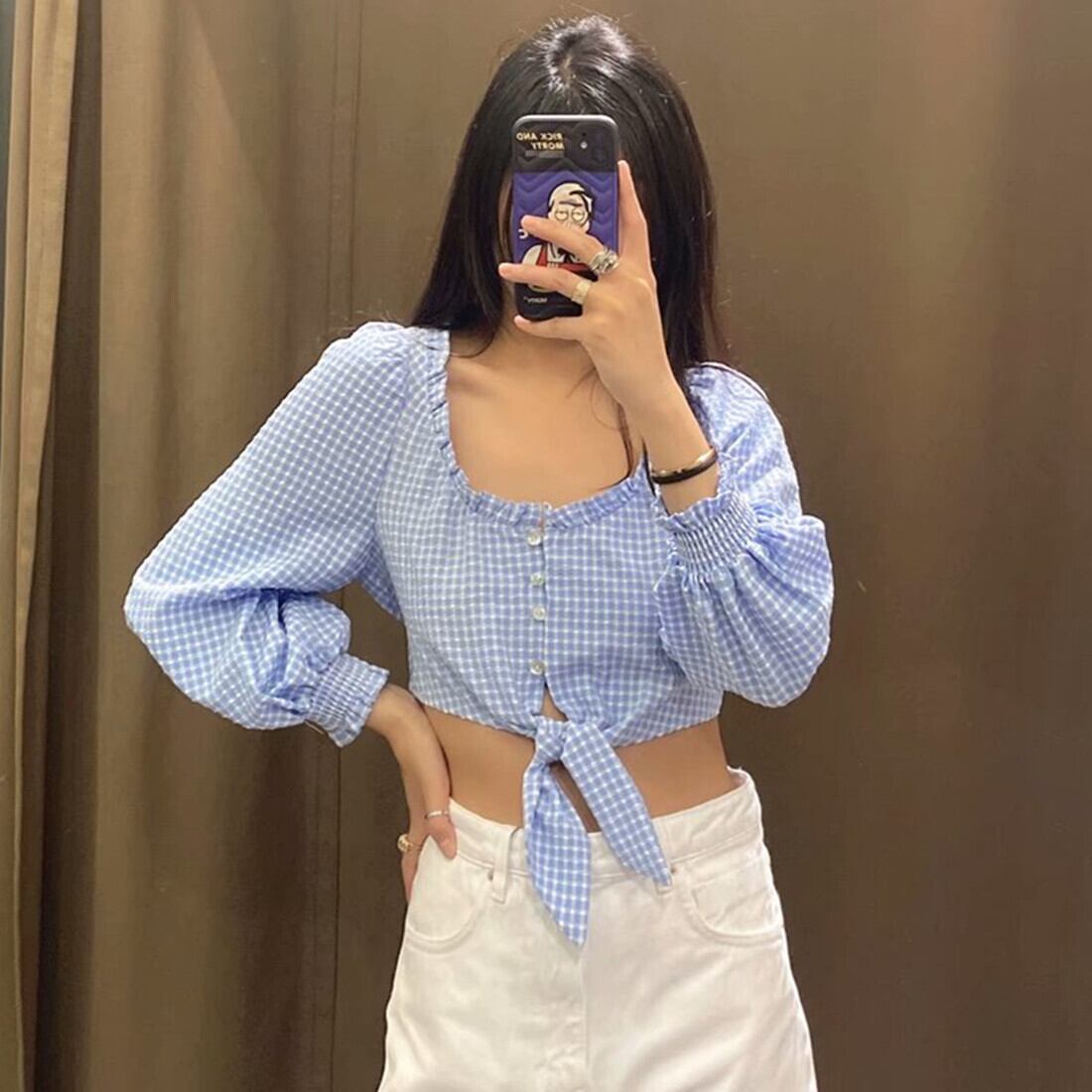 Ω ブルーショートトップス Ω アイドル ジャケット ブルゾン Tシャツ 長袖 半袖 デニム ジーンズ スーツ ZARA フォーエバー21 GAP H&M WEGO HONEYS MUJI GU UNIQLO dholic babyGAP FOREVER21 Old Navy 春夏秋冬 韓国 K-POP Kpop 韓流 スター 25A36047726854