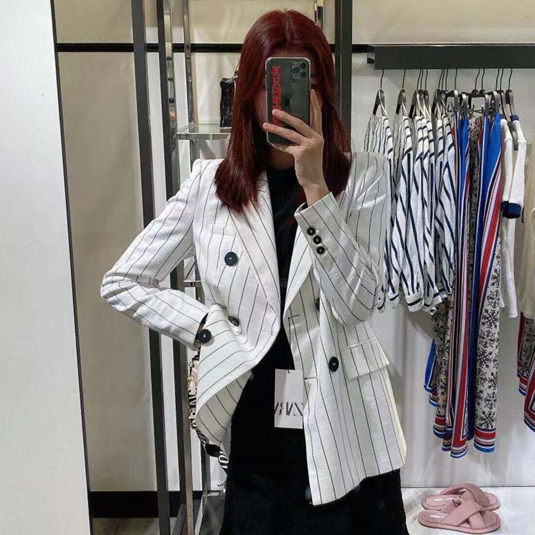 Ω ストライプダブルブレストジャケット Ω アイドル ジャケット ブルゾン Tシャツ 長袖 半袖 デニム ジーンズ スーツ ZARA フォーエバー21 GAP H&M WEGO HONEYS MUJI GU UNIQLO dholic babyGAP FOREVER21 Old Navy 春夏秋冬 韓国 K-POP Kpop 韓流 スター 25A92650354663