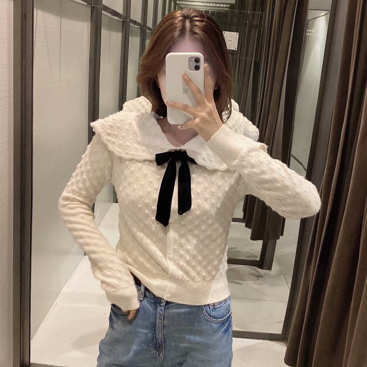 Ω スタイルショートセーター リボンニット Ω アイドル ジャケット ブルゾン Tシャツ 長袖 半袖 デニム ジーンズ スーツ ZARA フォーエバー21 GAP H&M WEGO HONEYS MUJI GU UNIQLO dholic babyGAP FOREVER21 Old Navy 春夏秋冬 韓国 K-POP Kpop 韓流 スター 25A33183969560