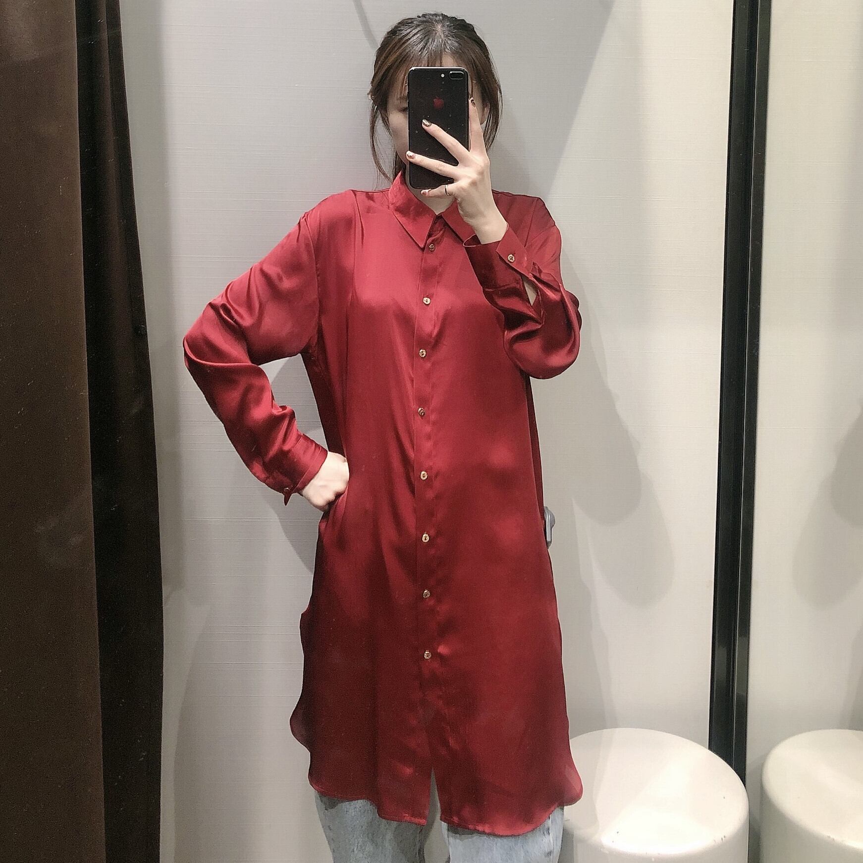 Ω ダークレッドサテンロングシャツ シルク ヨーロピアン Ω アイドル ジャケット ブルゾン Tシャツ 長袖 半袖 デニム ジーンズ スーツ ZARA フォーエバー21 GAP H&M WEGO HONEYS MUJI GU UNIQLO dholic babyGAP FOREVER21 Old Navy 春夏秋冬 韓国 K-POP Kpop 韓流 スター 25A46985529610