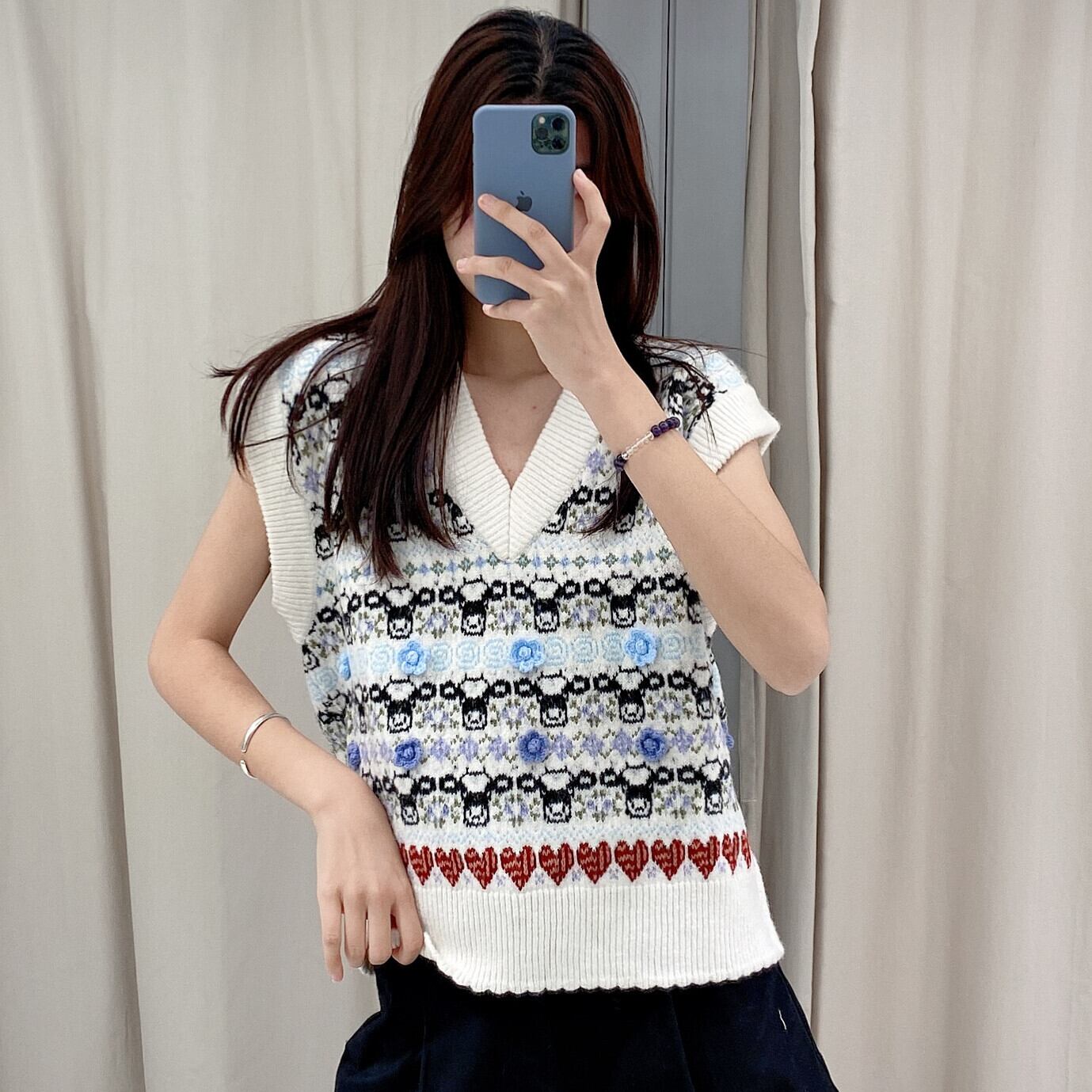 Ω スタイルニットセーター Flowerデザイン ジャカード フラワーデザイン Ω アイドル ジャケット ブルゾン Tシャツ 長袖 半袖 デニム ジーンズ スーツ ZARA フォーエバー21 GAP H&M WEGO HONEYS MUJI GU UNIQLO dholic babyGAP FOREVER21 Old Navy 春夏秋冬 韓国 K-POP Kpop 韓流 スター 25A62201305069