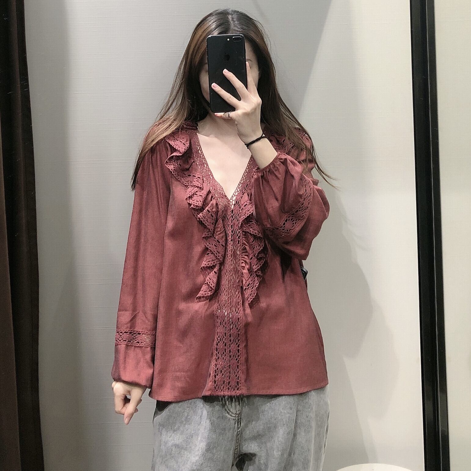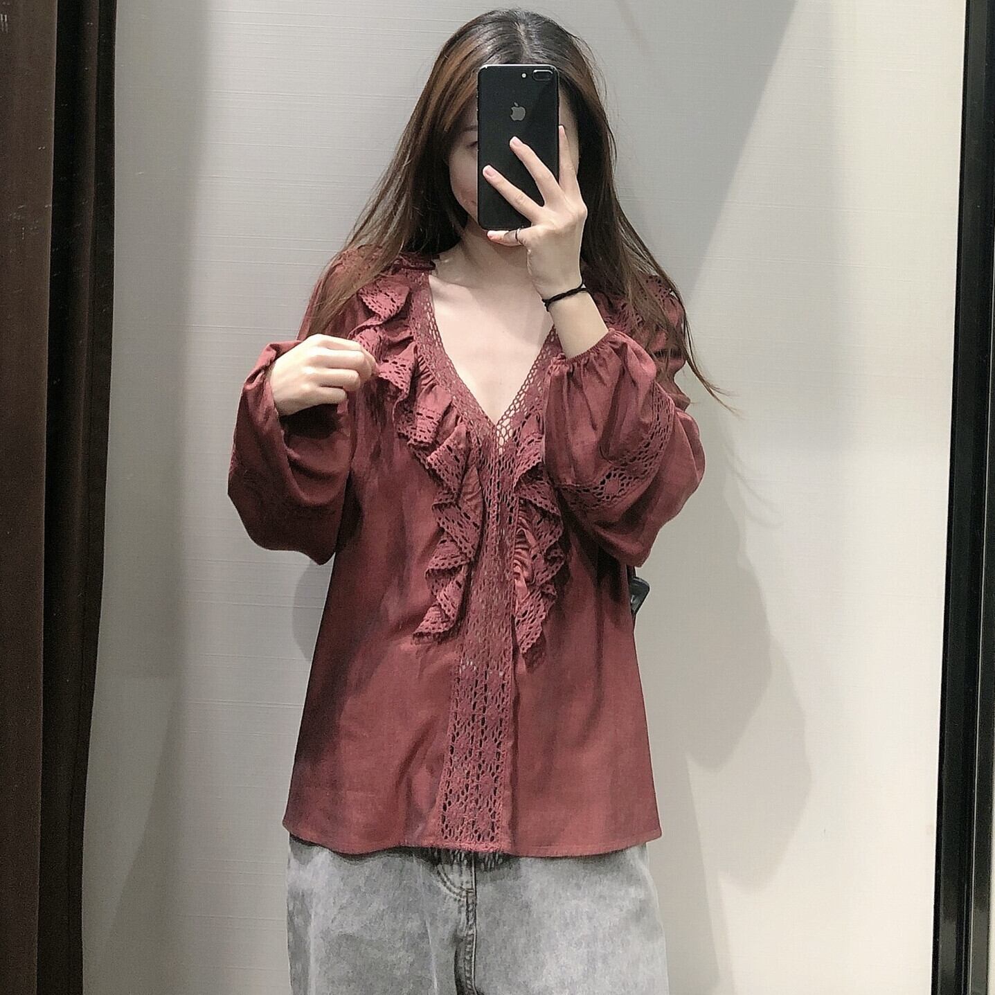 Ω ダークレッドブラウス ヨーロピアン Ω アイドル ジャケット ブルゾン Tシャツ 長袖 半袖 デニム ジーンズ スーツ ZARA フォーエバー21 GAP H&M WEGO HONEYS MUJI GU UNIQLO dholic babyGAP FOREVER21 Old Navy 春夏秋冬 韓国 K-POP Kpop 韓流 スター 25A51318178025