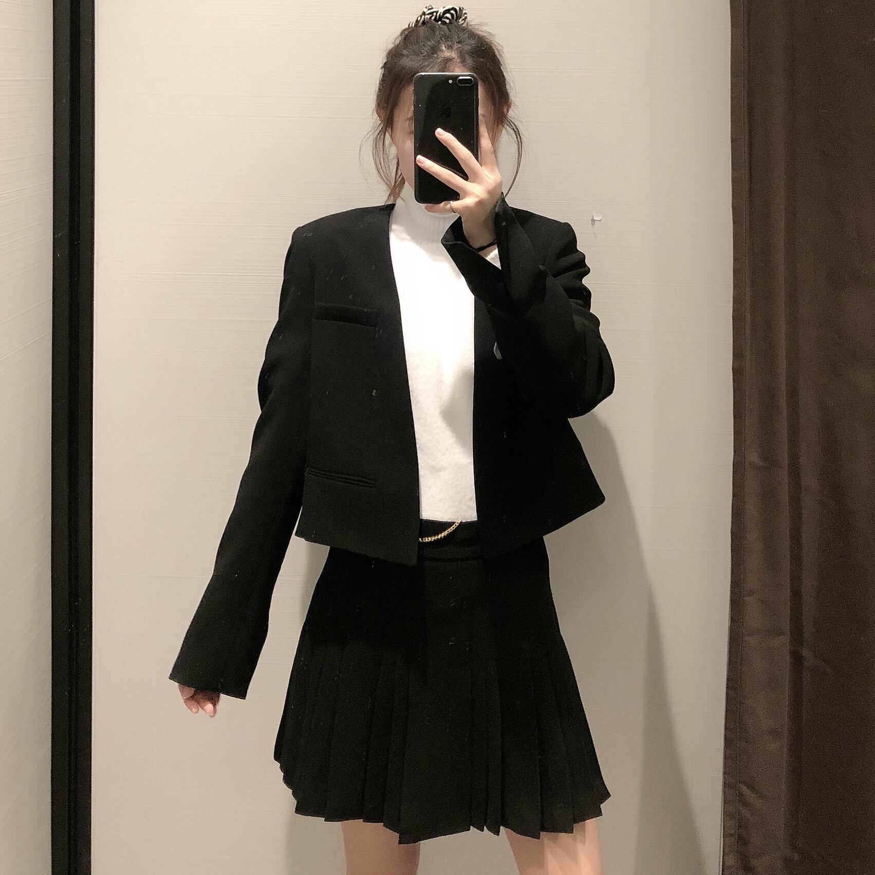 Ω ブラックレディースショートカジュアルジャケット Ω アイドル ジャケット ブルゾン Tシャツ 長袖 半袖 デニム ジーンズ スーツ ZARA フォーエバー21 GAP H&M WEGO HONEYS MUJI GU UNIQLO dholic babyGAP FOREVER21 Old Navy 春夏秋冬 韓国 K-POP Kpop 韓流 スター 25A42811807929