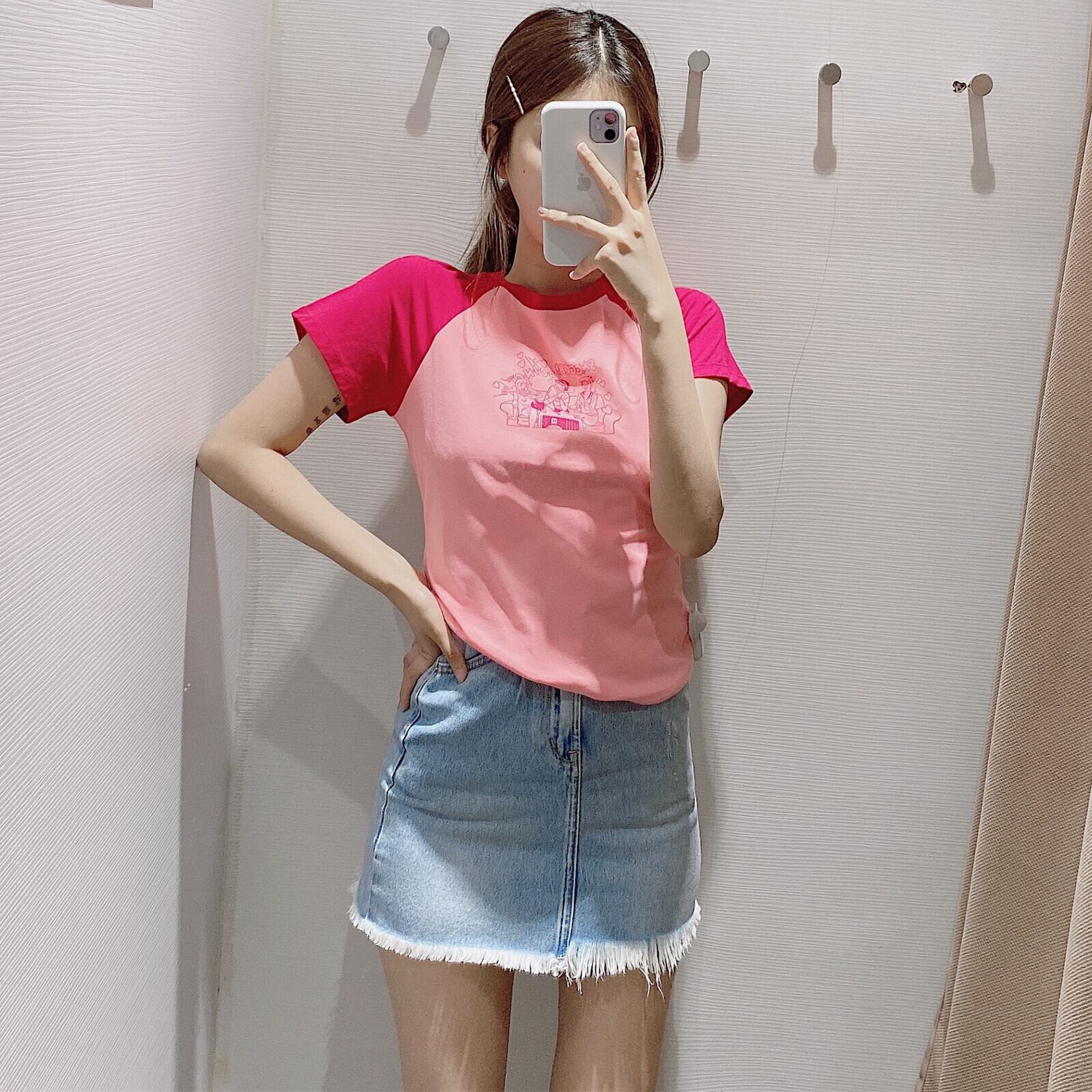 Ω スリムフィットカラープリント柄半袖スリーブTシャツ ショート ハーフスリーブ スプリング 春物 サマー 夏物 Ω アイドル ジャケット ブルゾン Tシャツ 長袖 半袖 デニム ジーンズ スーツ ZARA フォーエバー21 GAP H&M WEGO HONEYS MUJI GU UNIQLO dholic babyGAP FOREVER21 Old Navy 春夏秋冬 韓国 K-POP Kpop 韓流 スター 25A28611754430