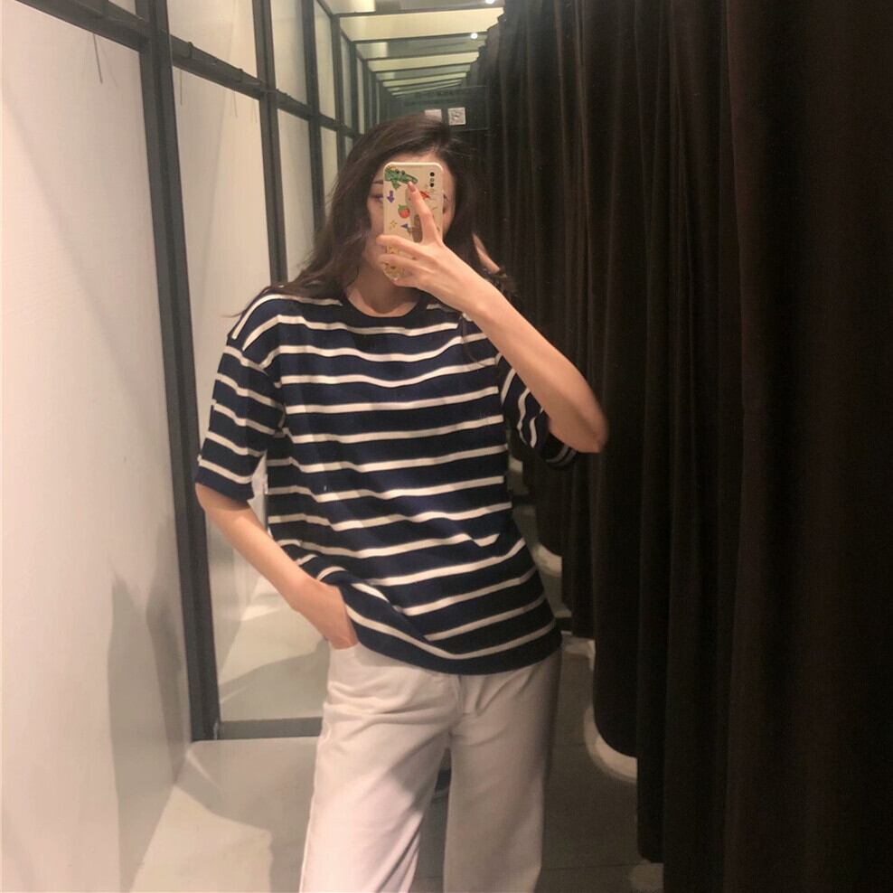 Ω スタイルストライプTシャツ 大きめサイズ Ω アイドル ジャケット ブルゾン Tシャツ 長袖 半袖 デニム ジーンズ スーツ ZARA フォーエバー21 GAP H&M WEGO HONEYS MUJI GU UNIQLO dholic babyGAP FOREVER21 Old Navy 春夏秋冬 韓国 K-POP Kpop 韓流 スター 25A51839849723