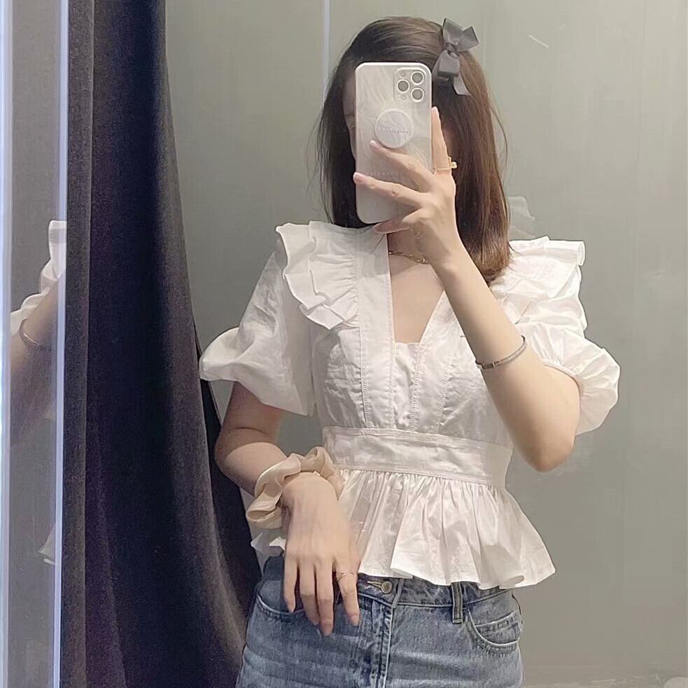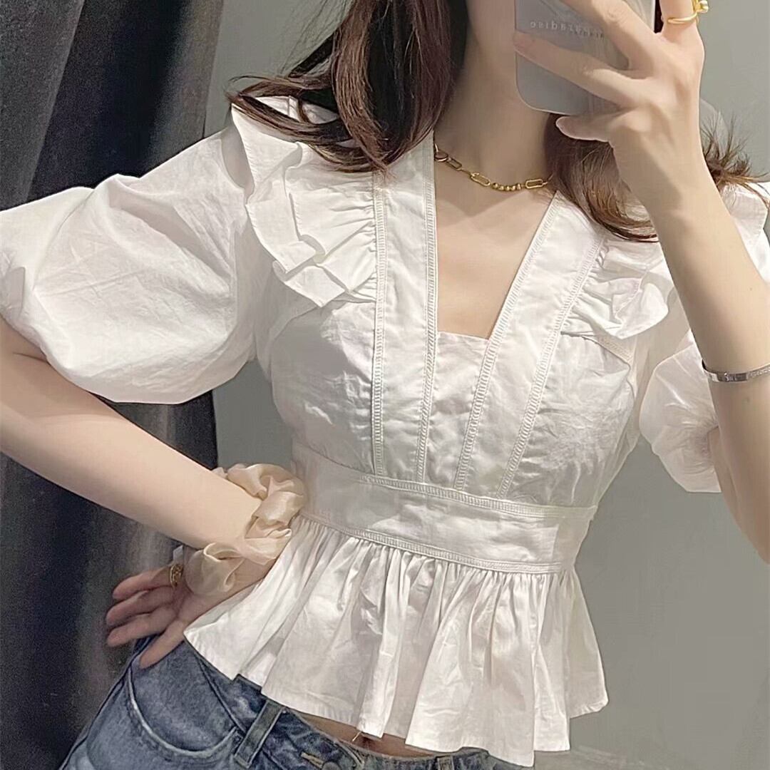 Ω ホワイトショートトップス スリーブシャツ 大人ガーリー スウィート キュート カジュアル Ω アイドル ジャケット ブルゾン Tシャツ 長袖 半袖 デニム ジーンズ スーツ ZARA フォーエバー21 GAP H&M WEGO HONEYS MUJI GU UNIQLO dholic babyGAP FOREVER21 Old Navy 春夏秋冬 韓国 K-POP Kpop 韓流 スター 25A8785613191