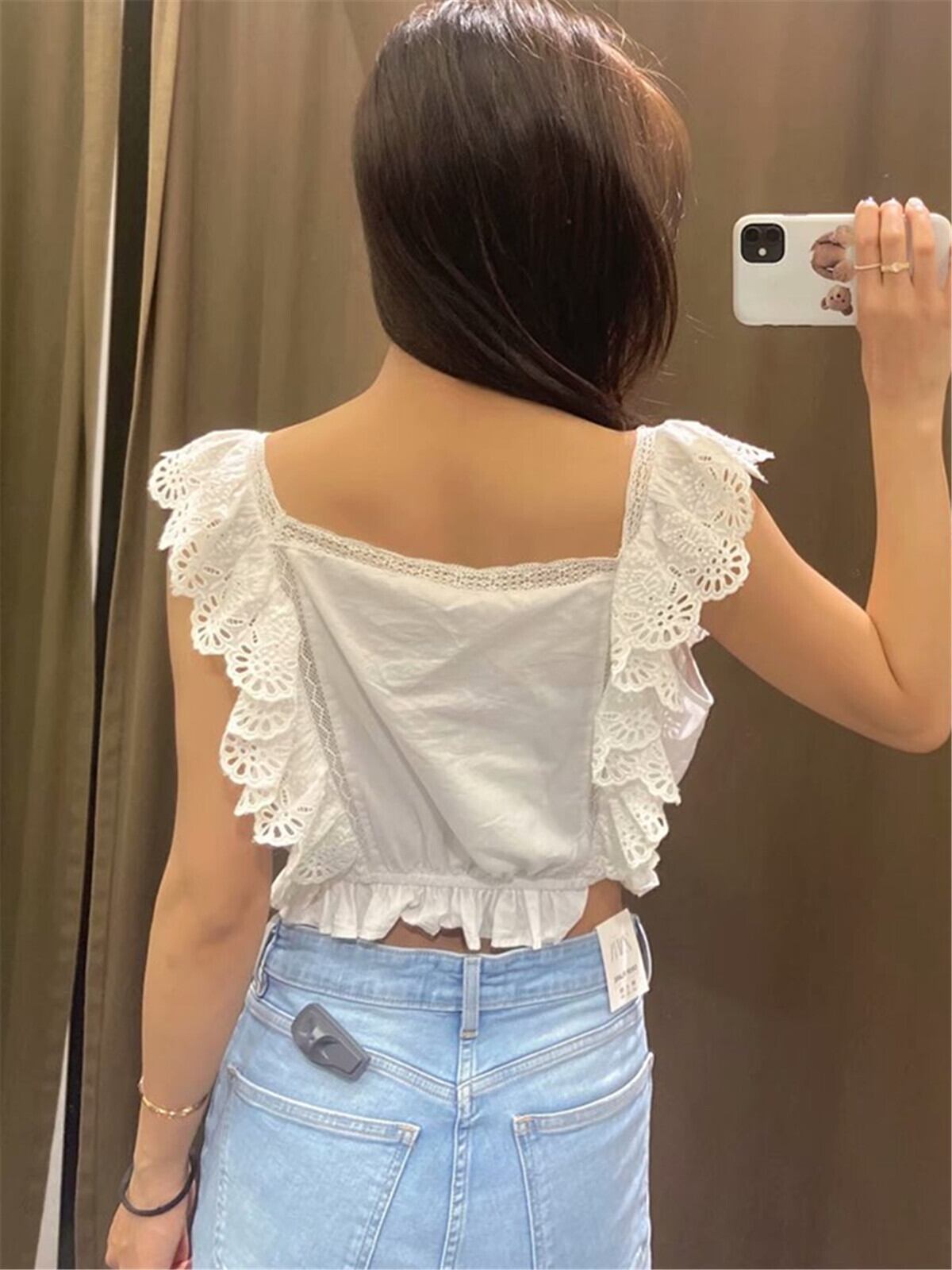 Ω ホワイトショートトップス Ω アイドル ジャケット ブルゾン Tシャツ 長袖 半袖 デニム ジーンズ スーツ ZARA フォーエバー21 GAP H&M WEGO HONEYS MUJI GU UNIQLO dholic babyGAP FOREVER21 Old Navy 春夏秋冬 韓国 K-POP Kpop 韓流 スター 25A71783761755