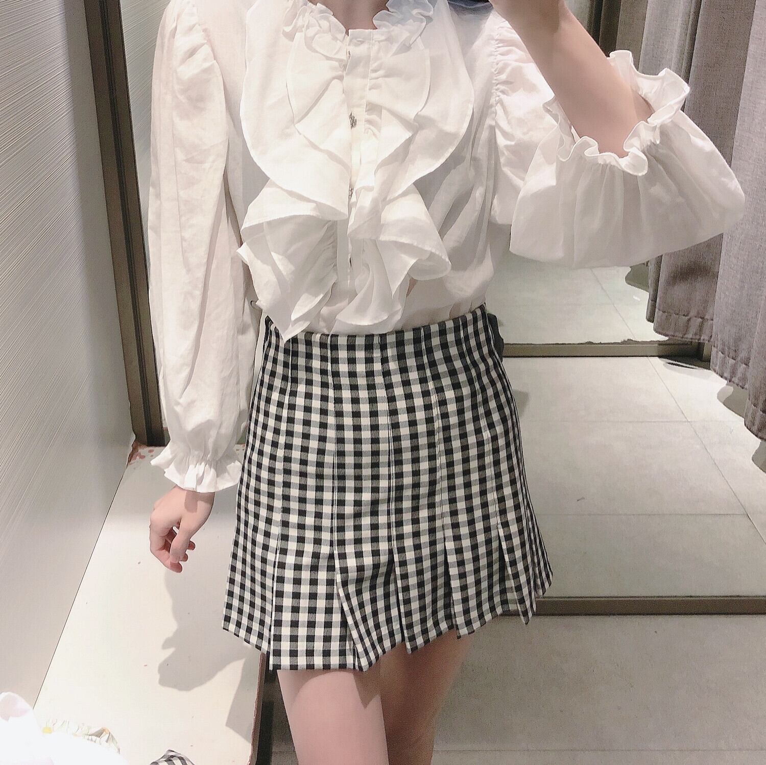 Ω ブラックホワイト格子柄スカート ミニ Ω アイドル ジャケット ブルゾン Tシャツ 長袖 半袖 デニム ジーンズ スーツ ZARA フォーエバー21 GAP H&M WEGO HONEYS MUJI GU UNIQLO dholic babyGAP FOREVER21 Old Navy 春夏秋冬 韓国 K-POP Kpop 韓流 スター 25A24269150491