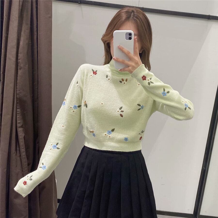 Ω Flowerデザイン 刺繍ニットセーター フラワーデザイン Ω アイドル ジャケット ブルゾン Tシャツ 長袖 半袖 デニム ジーンズ スーツ ZARA フォーエバー21 GAP H&M WEGO HONEYS MUJI GU UNIQLO dholic babyGAP FOREVER21 Old Navy 春夏秋冬 韓国 K-POP Kpop 韓流 スター 25A9154361748