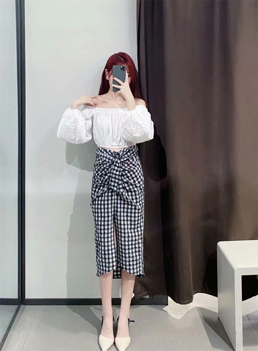 Ω 格子柄ミディスカート Ω アイドル ジャケット ブルゾン Tシャツ 長袖 半袖 デニム ジーンズ スーツ ZARA フォーエバー21 GAP H&M WEGO HONEYS MUJI GU UNIQLO dholic babyGAP FOREVER21 Old Navy 春夏秋冬 韓国 K-POP Kpop 韓流 スター 25A27328405479