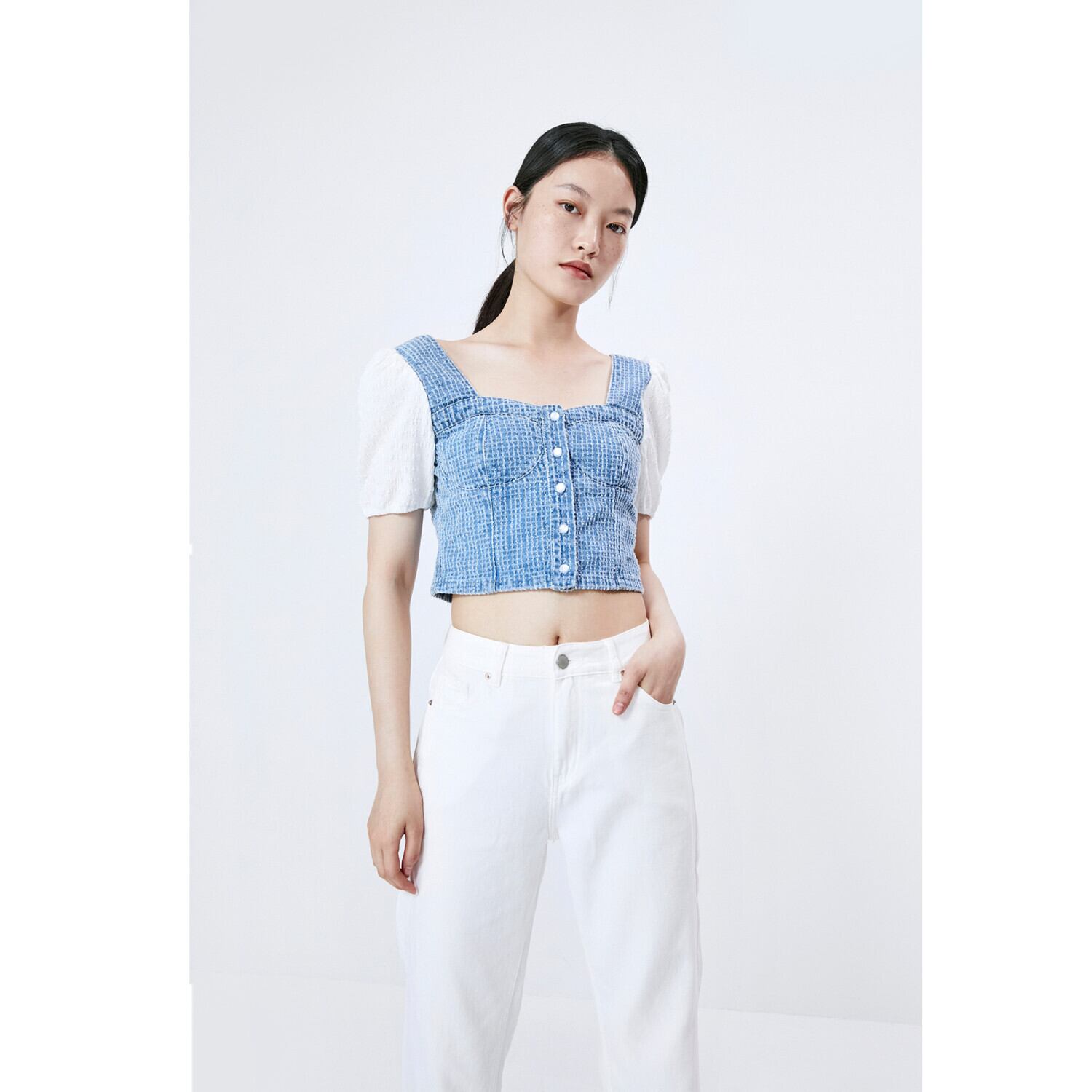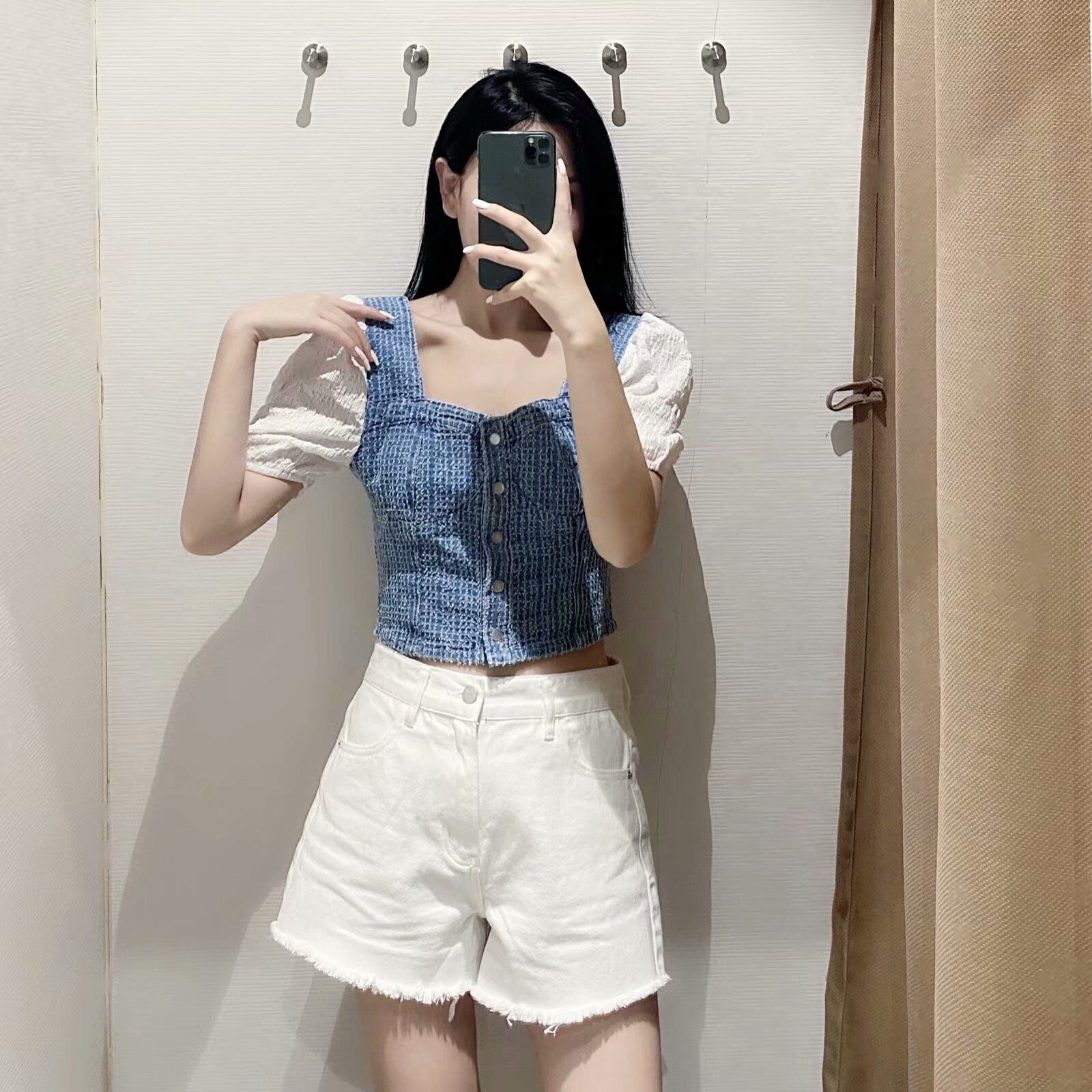 Ω ショートトップス 薄手シャツ スクウェア ステッチ Ω アイドル ジャケット ブルゾン Tシャツ 長袖 半袖 デニム ジーンズ スーツ ZARA フォーエバー21 GAP H&M WEGO HONEYS MUJI GU UNIQLO dholic babyGAP FOREVER21 Old Navy 春夏秋冬 韓国 K-POP Kpop 韓流 スター 25A26084653846
