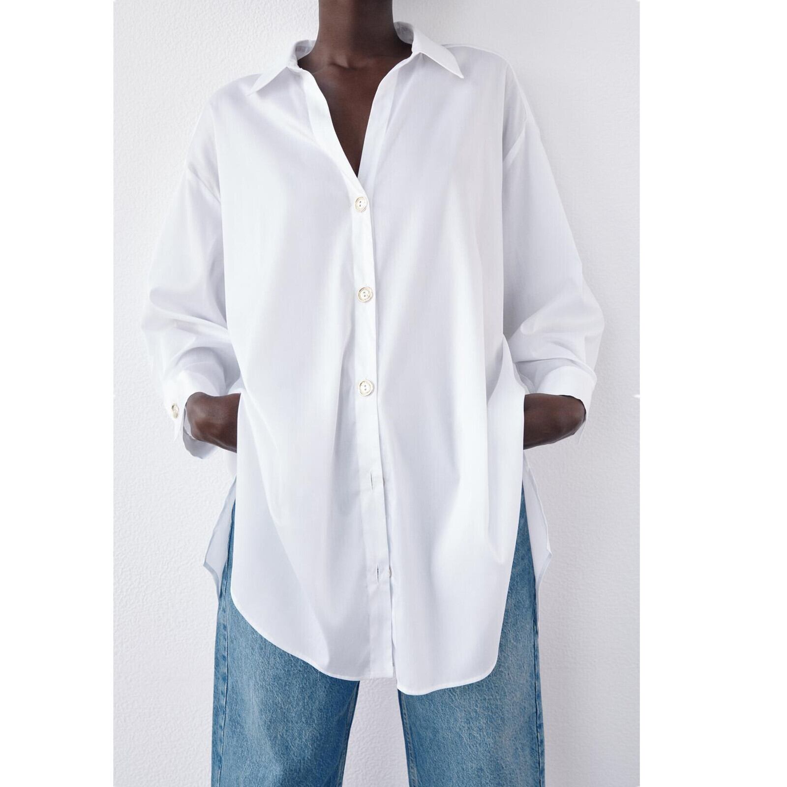 Ω ホワイトシャツ ゴールドボタンロングブラウス Ω アイドル ジャケット ブルゾン Tシャツ 長袖 半袖 デニム ジーンズ スーツ ZARA フォーエバー21 GAP H&M WEGO HONEYS MUJI GU UNIQLO dholic babyGAP FOREVER21 Old Navy 春夏秋冬 韓国 K-POP Kpop 韓流 スター 25A35877336643