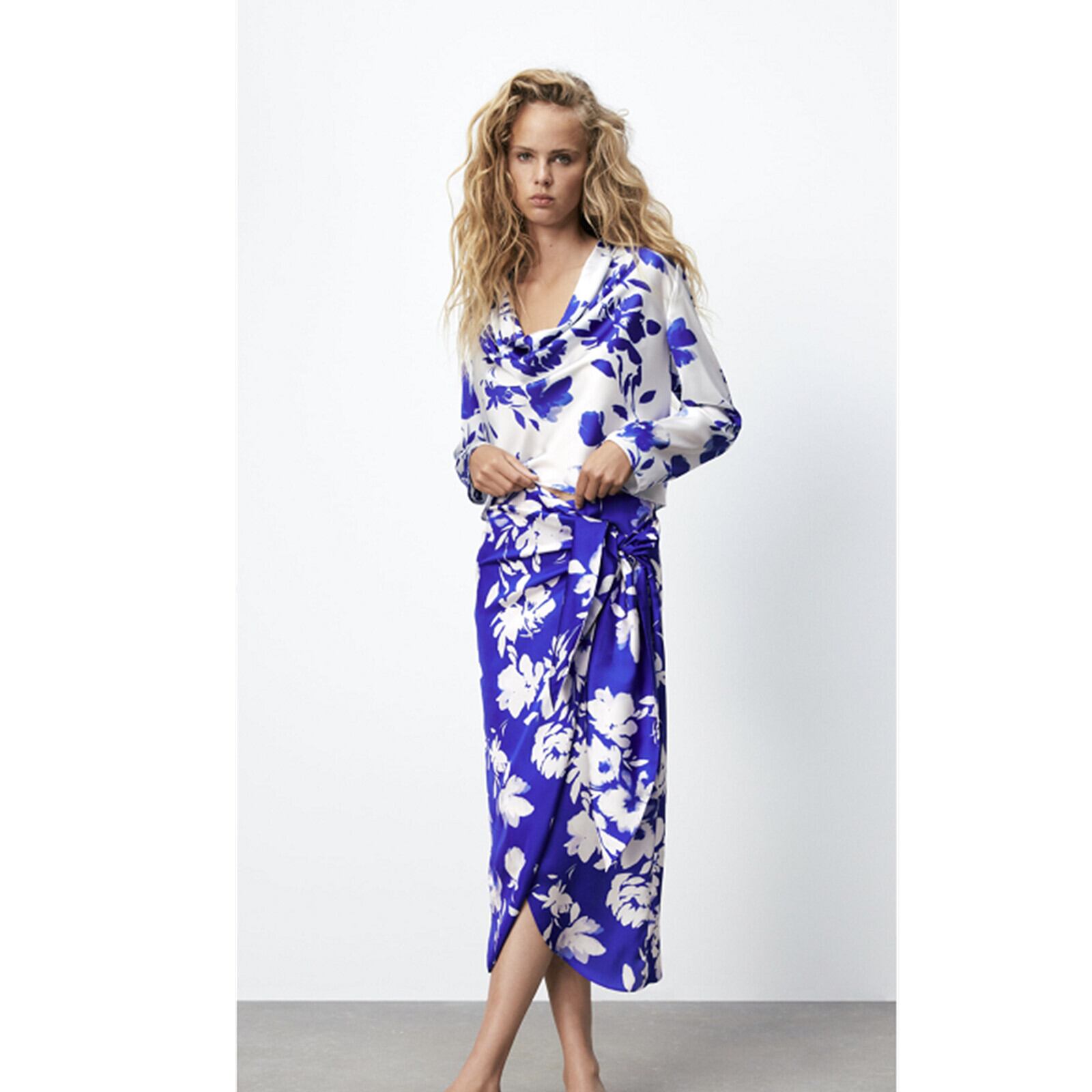 Ω ブルーショートトップス ドレープカラープリント柄 Ω アイドル ジャケット ブルゾン Tシャツ 長袖 半袖 デニム ジーンズ スーツ ZARA フォーエバー21 GAP H&M WEGO HONEYS MUJI GU UNIQLO dholic babyGAP FOREVER21 Old Navy 春夏秋冬 韓国 K-POP Kpop 韓流 スター 25A80446146551